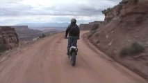 On the road, you learn to slow down for safety. On big, heavy bikes, around bigger, heavier cars, that’s just the best approach. Off-road, on a light bike? You’re actually far more stable when you apply some speed. The gyroscopic force of the wheels will keep you upright, momentum will carry you over or through tough terrain like deep sand. Moving your weight backward has the combined effect of adding traction to the rear wheel, where the power is being applied and taking weight off the front, allowing it to deflect and ride over the stuff that it’s hitting.