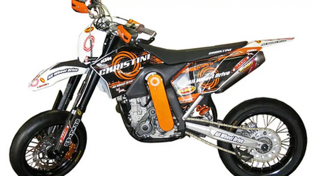 Christini Technologies has just released its first street legal all-wheel-drive motorcycle, the AWD SuperMoto. Unlike similar systems developed by KTM and Öhlins, the Christini conversion is mechanical, relying on a complicated system of drive shafts and chains to move power from the gearbox to the front wheel. The company already offers AWD conversions for Honda and KTM dirt bikes, so not only does this supermoto application make sense, but also it should be available to customers in the near future.
