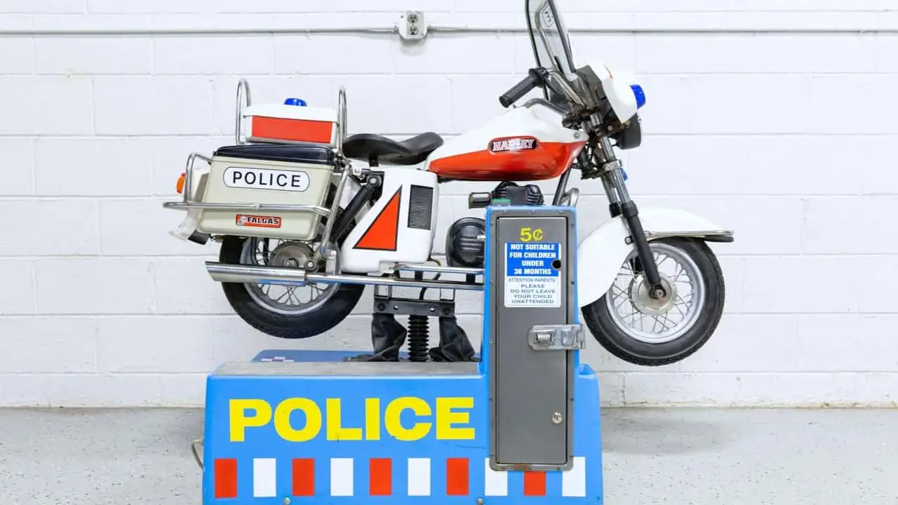 Why am I talking about those rides, you ask? Well, one just came up for auction, and it's in the shape of an old-school Harley-Davidson police bike, and for the grandparent with deep pockets and little grandchildren who has a fondness for the brand, this could be a great addition to the house.